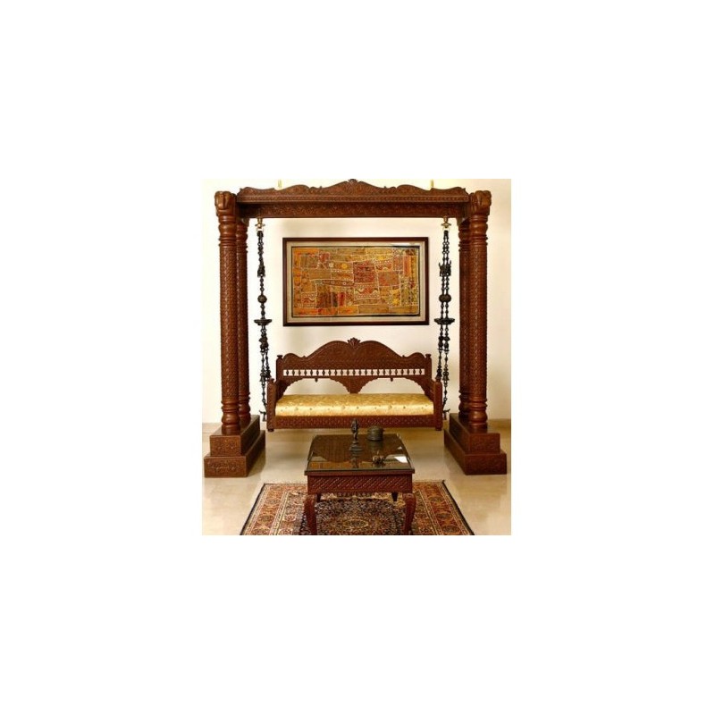 Hand Carved Wood Swing for Living Room (Jhula02)
