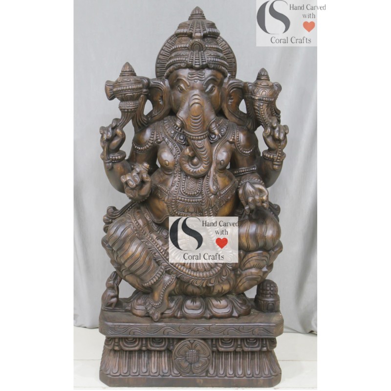 This beautiful Idol of Ganesha has been hand carved from solid wood. This idol is best to keep inside your home and office. The idol can be used at the entrance, niche or at a corner of your drawing room.