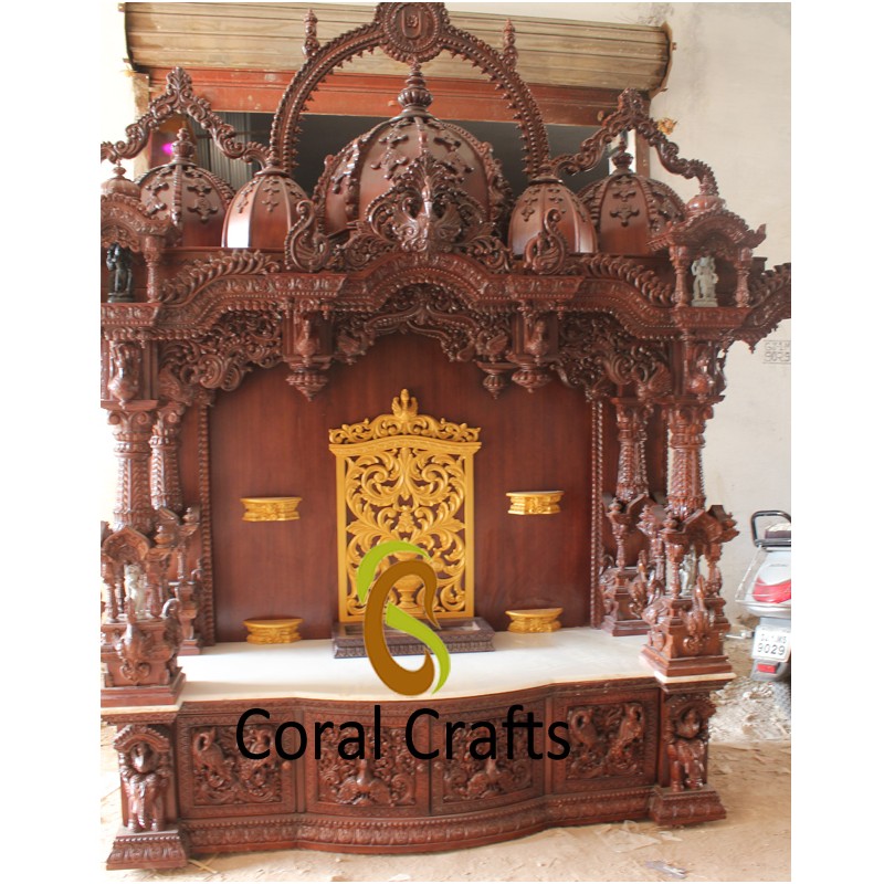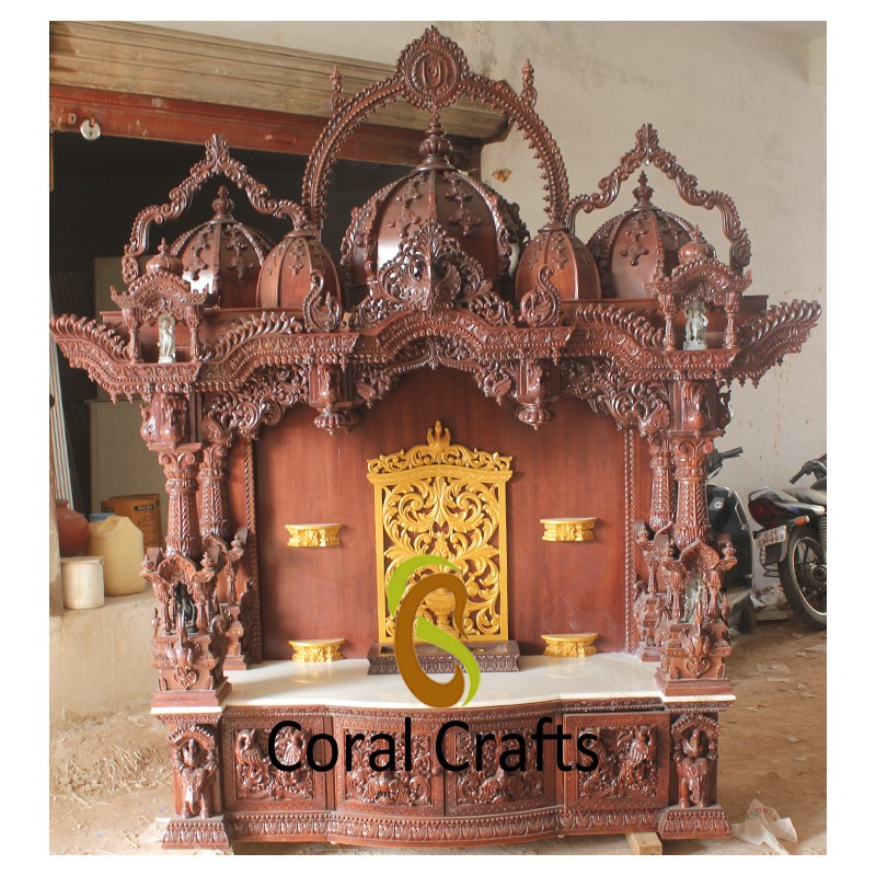 The wooden temple is designed with exquisite carvings and attention to detail, showcasing the rich cultural heritage of India. The elegant and traditional design of the temple is sure to add a touch of spirituality and grace to your home decor.