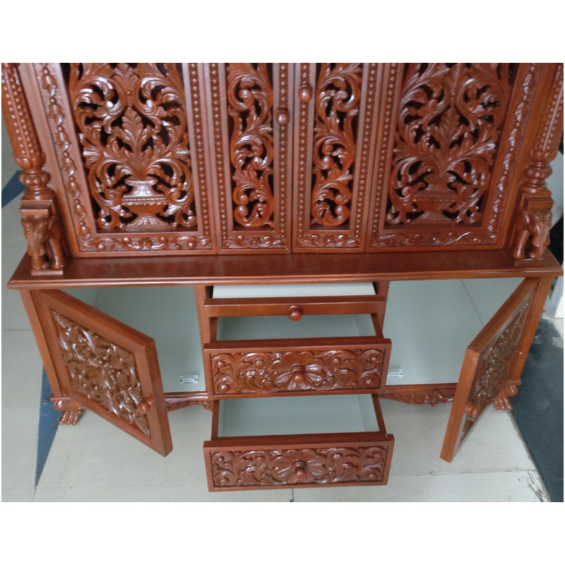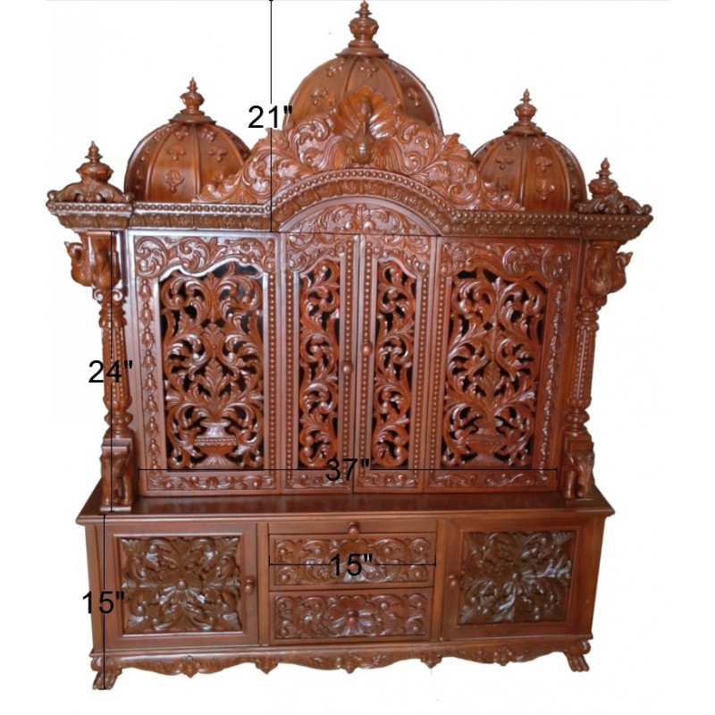 This temple has been carved from a combination of high quality teak wood and plywood. The temple can be custom made and polished in different shade as per your liking.