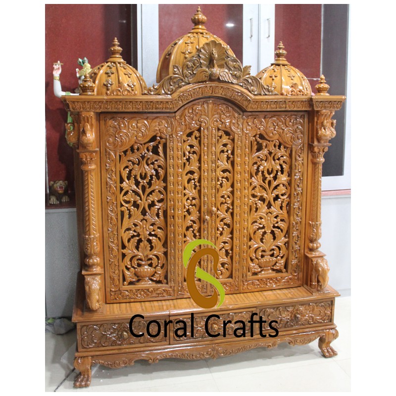 The wood mandir is designed with exquisite carvings and attention to detail, showcasing the rich cultural heritage of India. The elegant and traditional design of the mandir is sure to add a touch of spirituality and grace to your home decor.